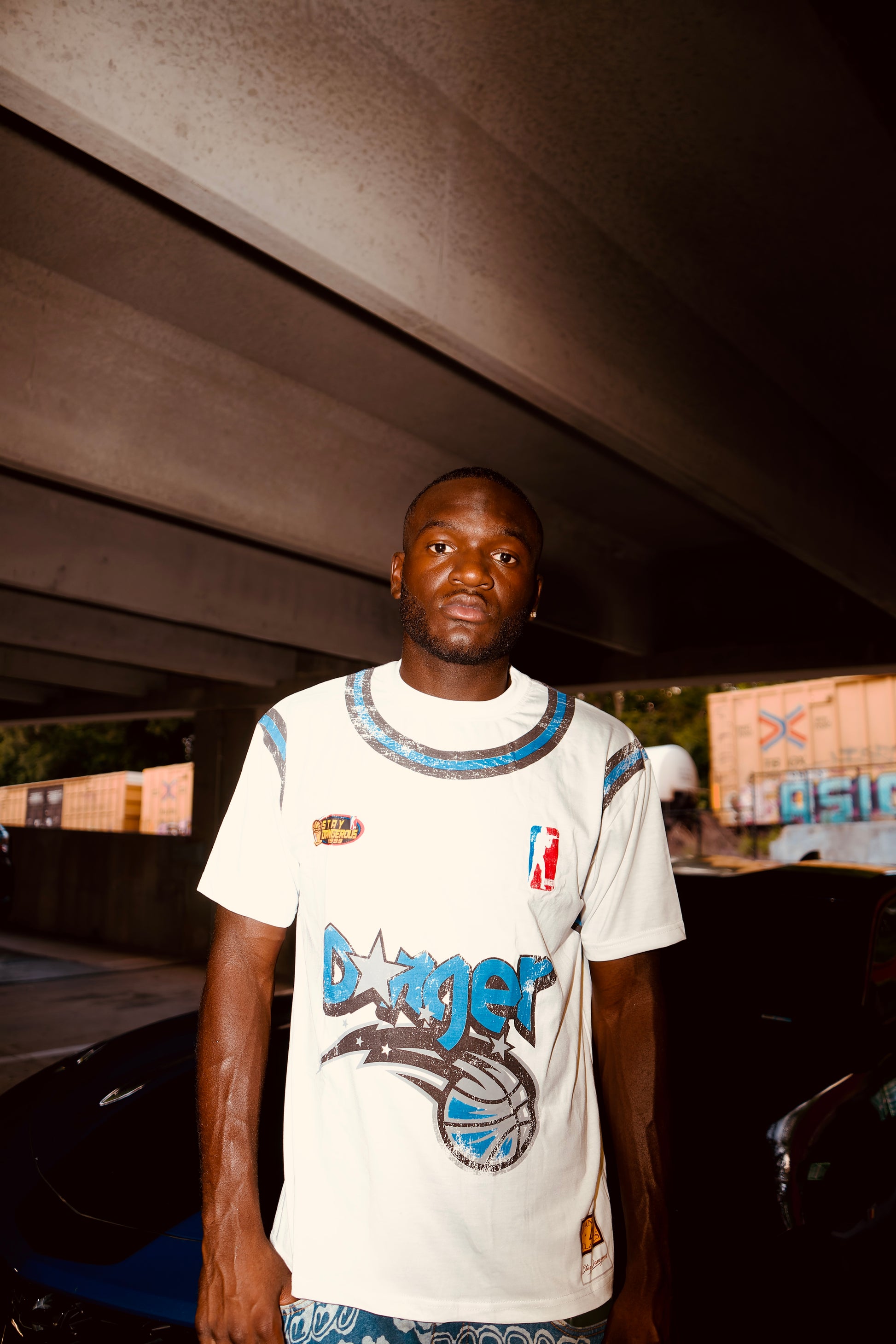 Cracked-effect “Danger” logo print